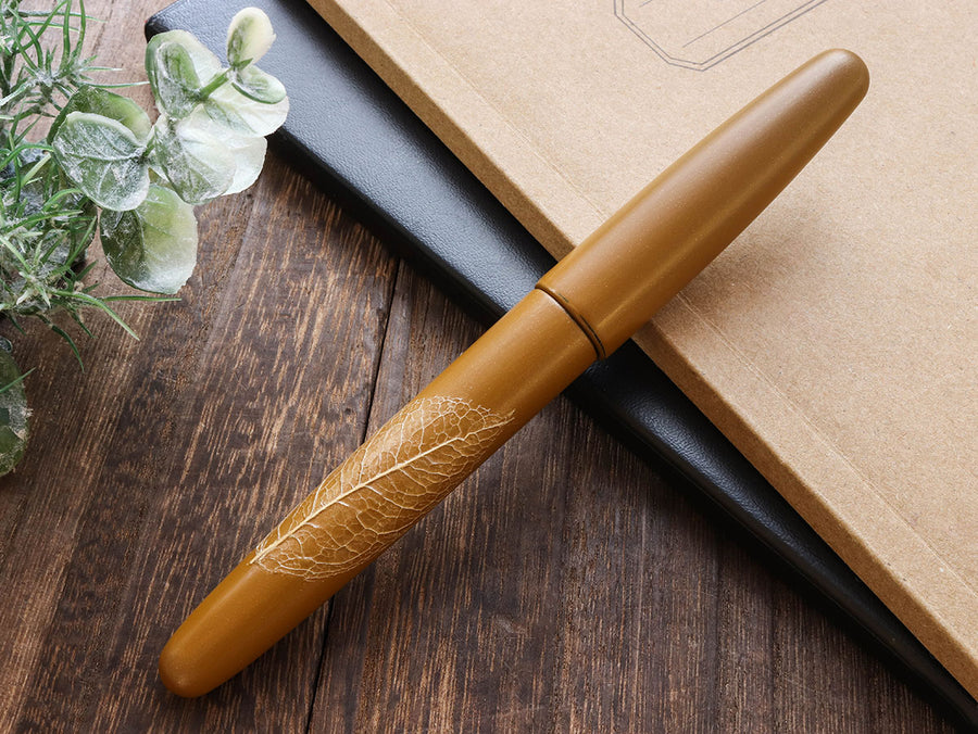 Finally, other multiple layers of Matt Urushi are applied. In order to honor the purest beauty of Japanese nature which has both smoothness and roughness, our artists keep the arts as natural as they are by applying Matt Urushi with Nuripanashi technique (the technique which does not require polishing step). The Matt Urushi also has the job of protecting the leaf as well. When you touch the body of each pen, you will feel the leaf as well as a naturally rough surface of Japanese Matt Urushi with some uneven dots.