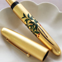 The whole body of the pen is covered with gold leaf sheet or Kinpaku with more than one layer. Therefore, delicate care for the body is highly recommended. Like every Urushi pen, Hirota Kinpaku Maki-e pens must be stored in a low-humidity environment and must be refrained from long exposure to direct sunlight to protect their color.