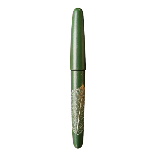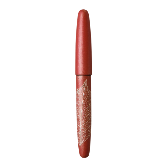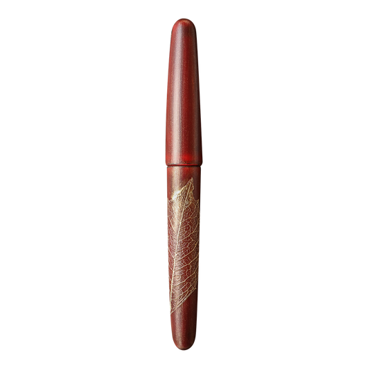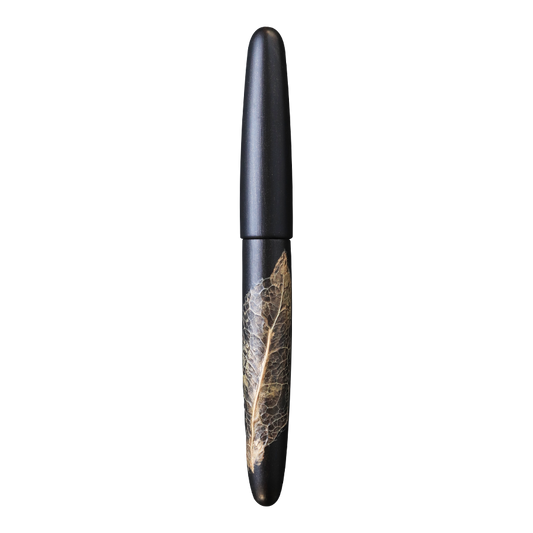 This new material allows the fountain pen to be slightly translucent, making the applied Suki Urushi and the beautiful, handcrafted winter leaf design stand out.