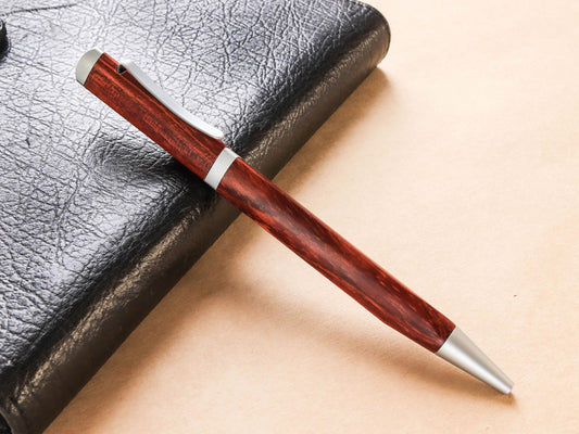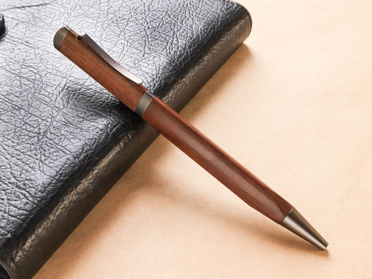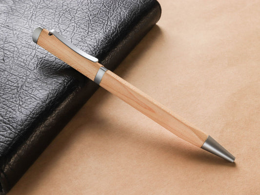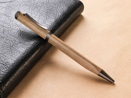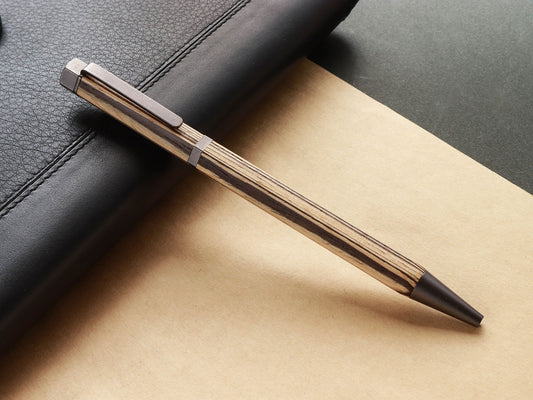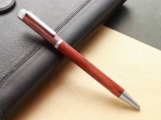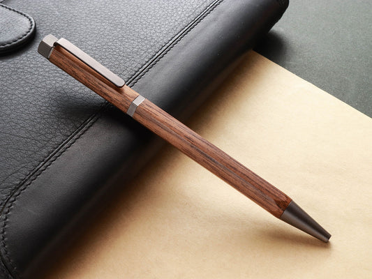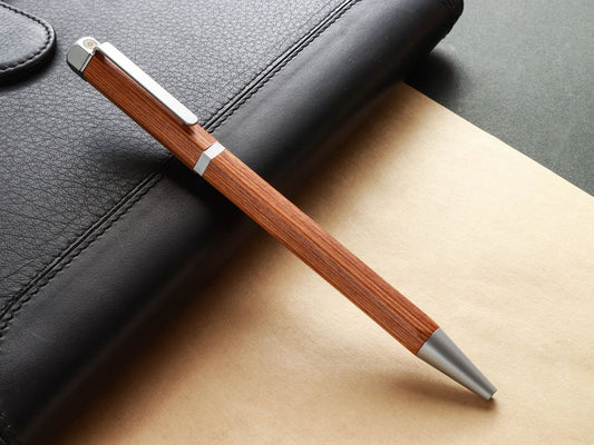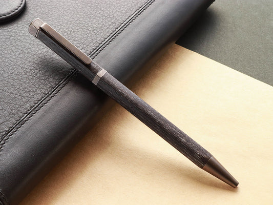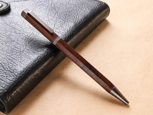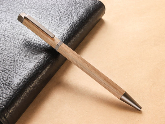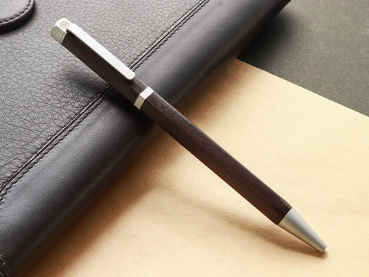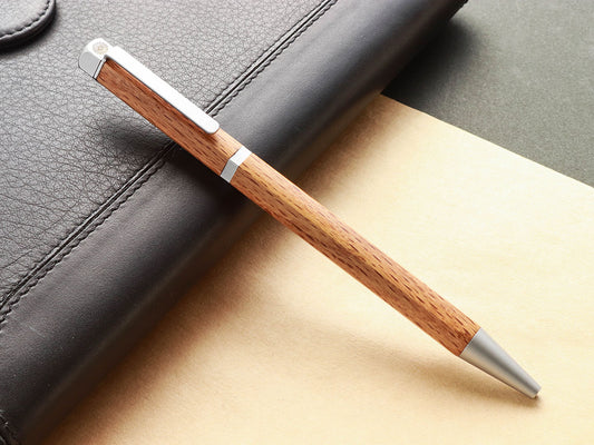 Meiboku ballpoint pen presents an exquisite design composed of natural wood and matt finished aluminum trims.