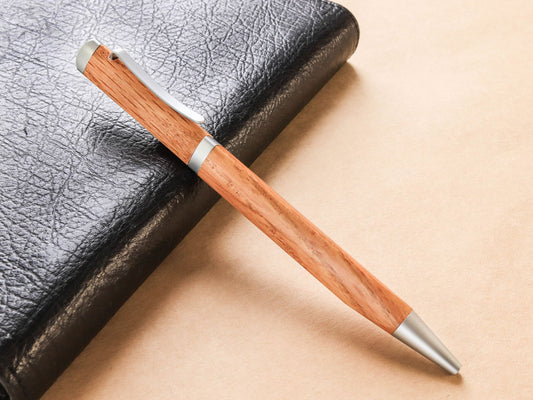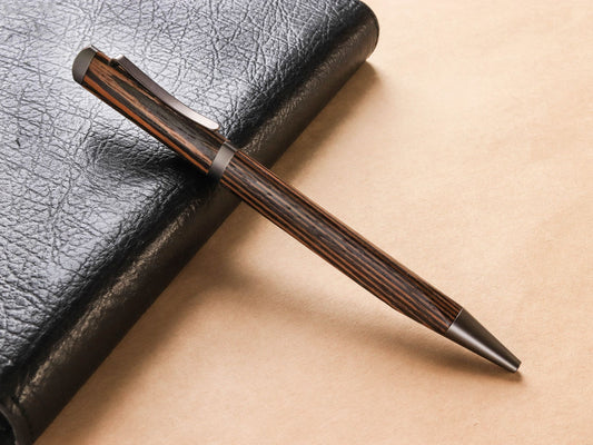 Meiboku ballpoint pen presents an exquisite design composed of natural wood and matt finished aluminum trims.