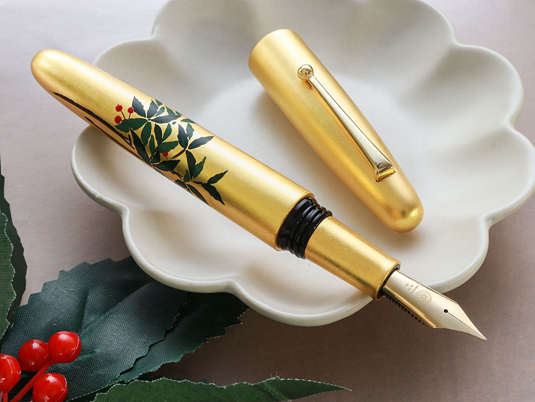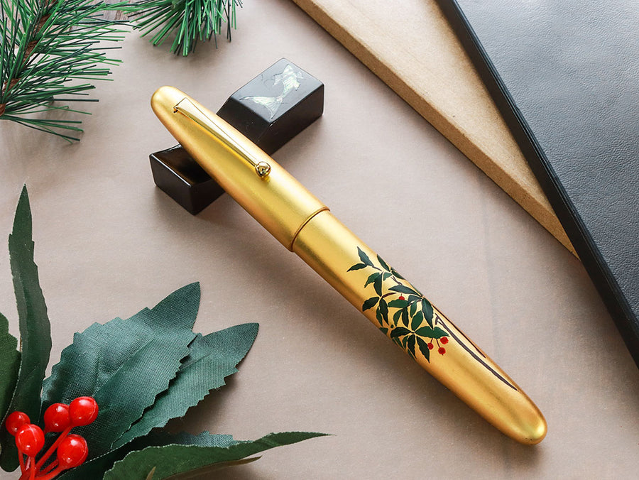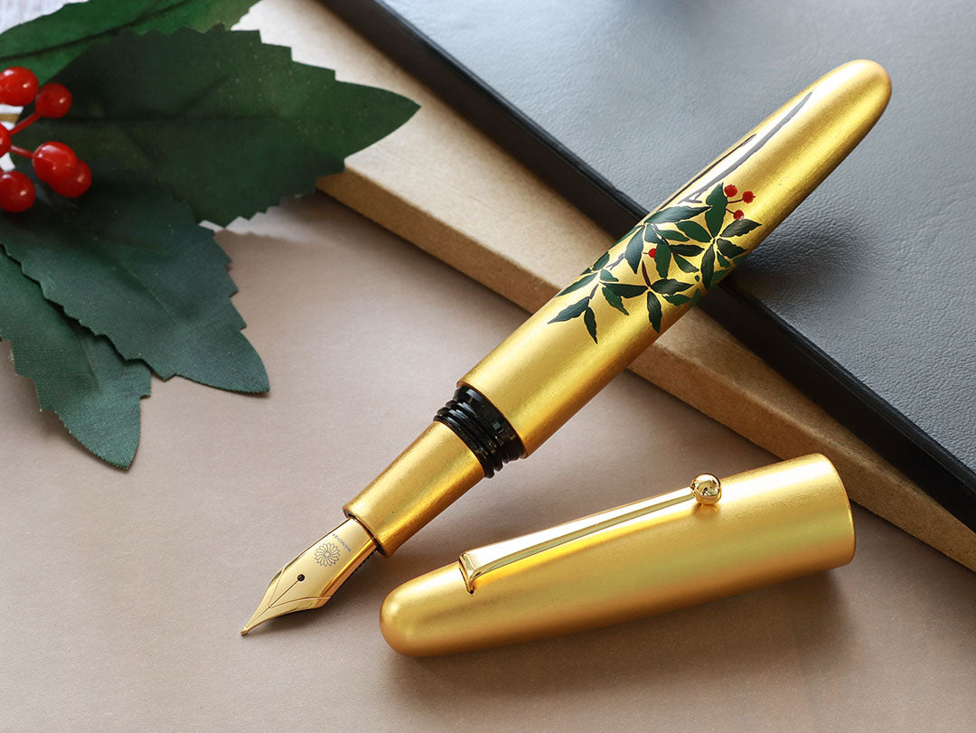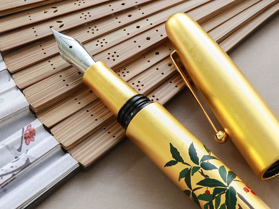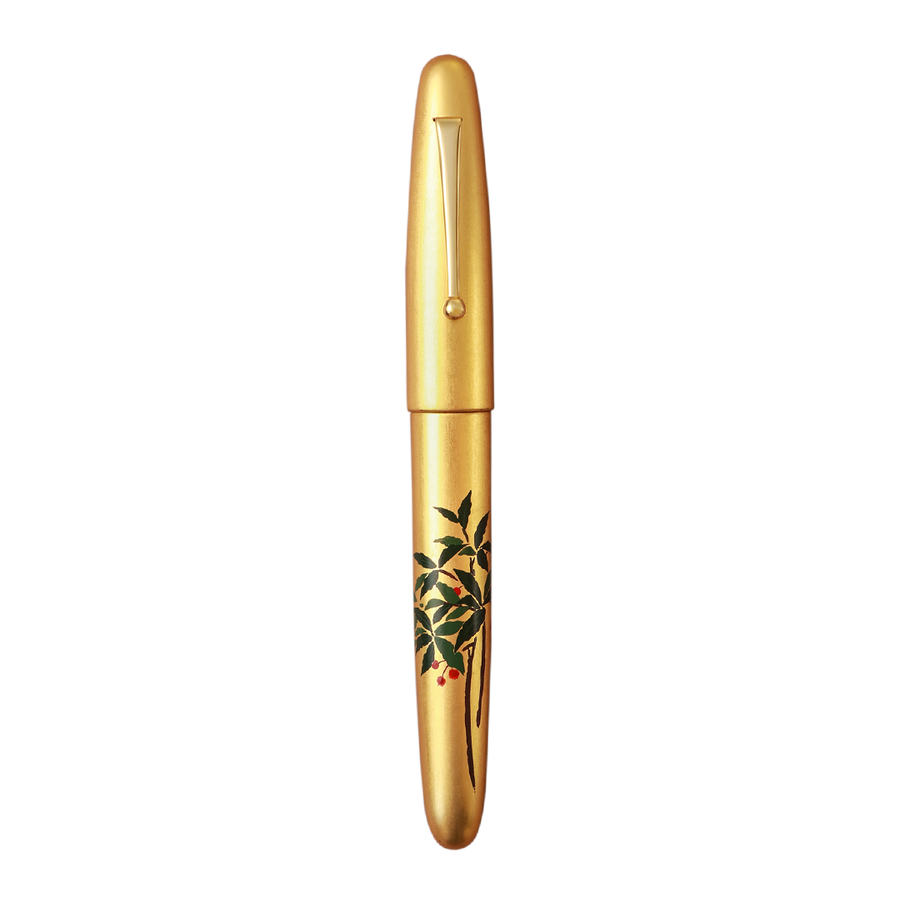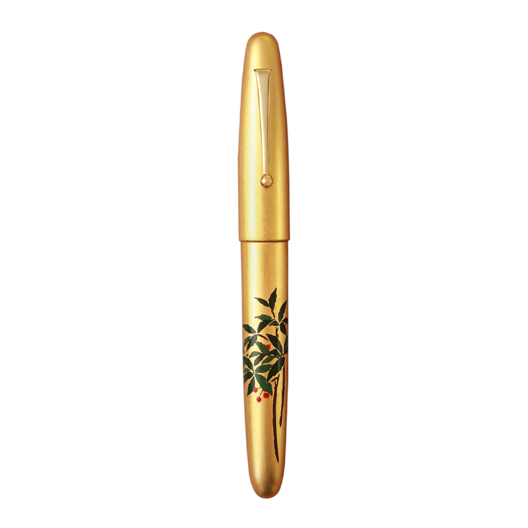 The whole body of the pen is covered with gold leaf sheet or Kinpaku with more than one layer. Therefore, delicate care for the body is highly recommended. Like every Urushi pen, Hirota Kinpaku Maki-e pens must be stored in a low-humidity environment and must be refrained from long exposure to direct sunlight to protect their color.