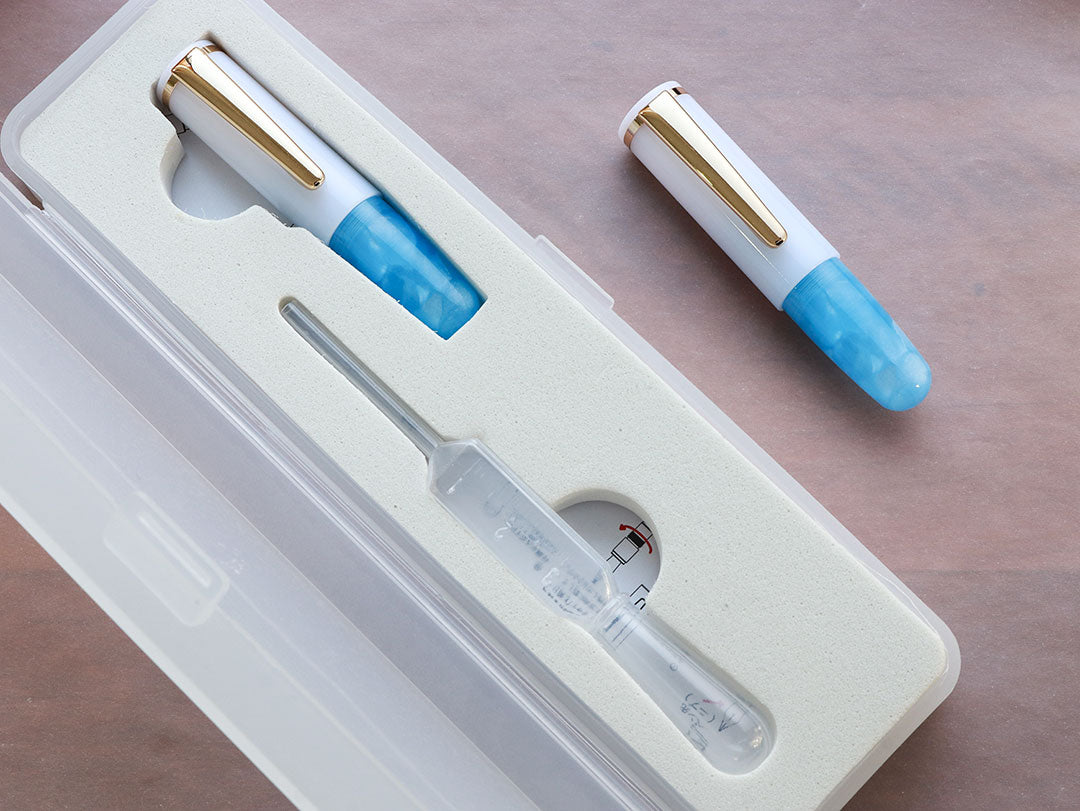 During the initial stages of pen design, our primary goal was to create the smallest fountain pen imaginable, measuring a mere 58mm. However, we soon discovered that this compact size hindered writing comfort and efficiency. Additionally, in our efforts to ensure the cap fit securely onto the shaft, we slimmed it down considerably. Consequently, we encountered the issue of limited ink capacity. Consequently, after careful consideration, we ultimately made the decision to increase the pen's length to 65mm.