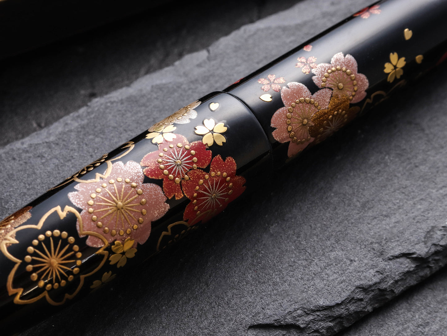 Being inspired by Sakura (Cherry Blossom), Dream Pen True Maki-e represents a beautiful picture of Japanese Sakura in spring through a perfect combination of gold, silver powder, and Urushi lacquer.
