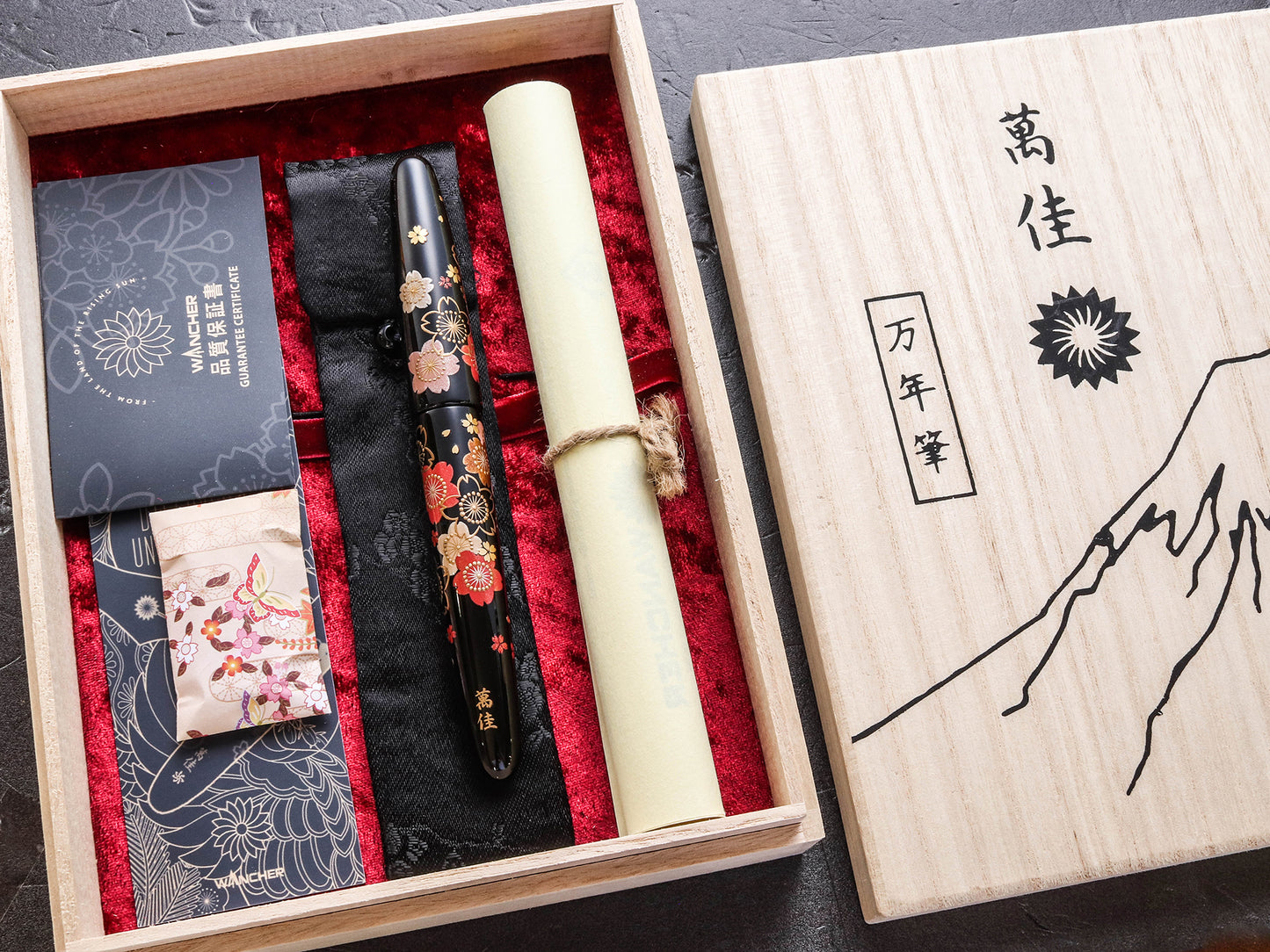 Dream Pen True Maki-e is Wancher's first and highest ranking Dream Pen design. The fountain pen is handcrafted with Togidashi-Taka Maki-e (Burnished-Rased Maki-e) technique by master Yamanoshita from Wajima, Japan.