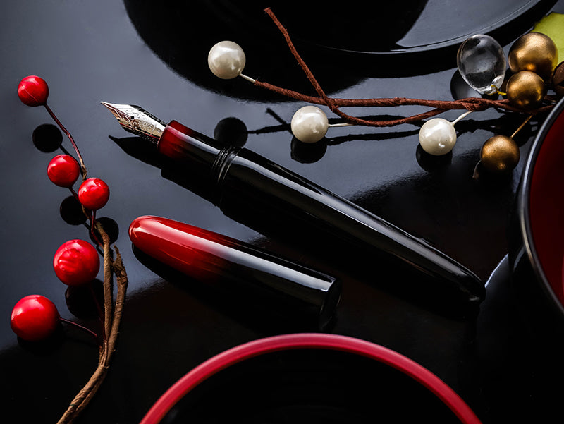 Handcrafted in Wajima, Japan by one of the most skillful craftsmen, Dream Pen Bokashi is made with the natural Red and Black Urushi in the design of Sunset, Sunrise, Solar Eclipse, and Lunar Eclipse.