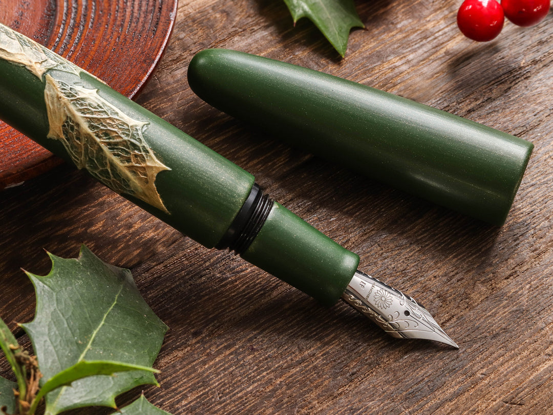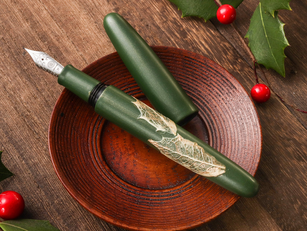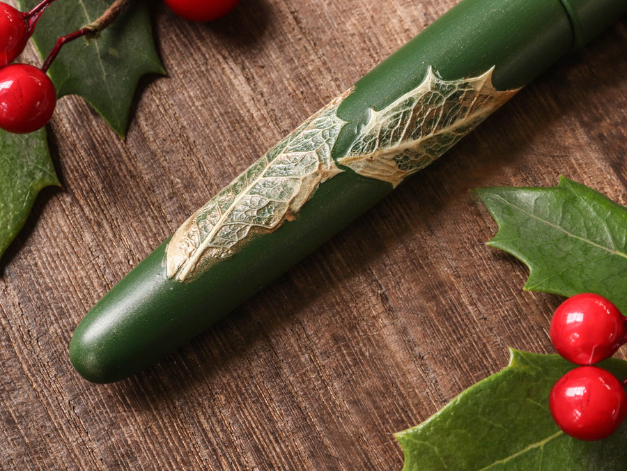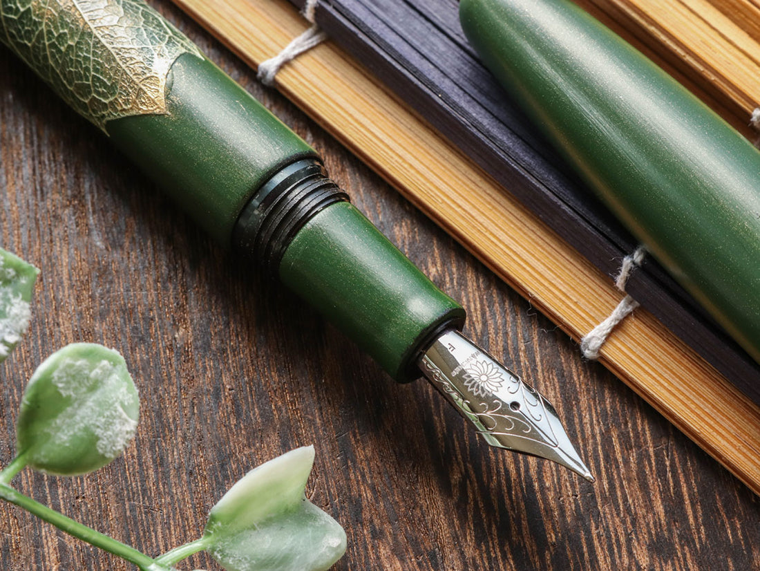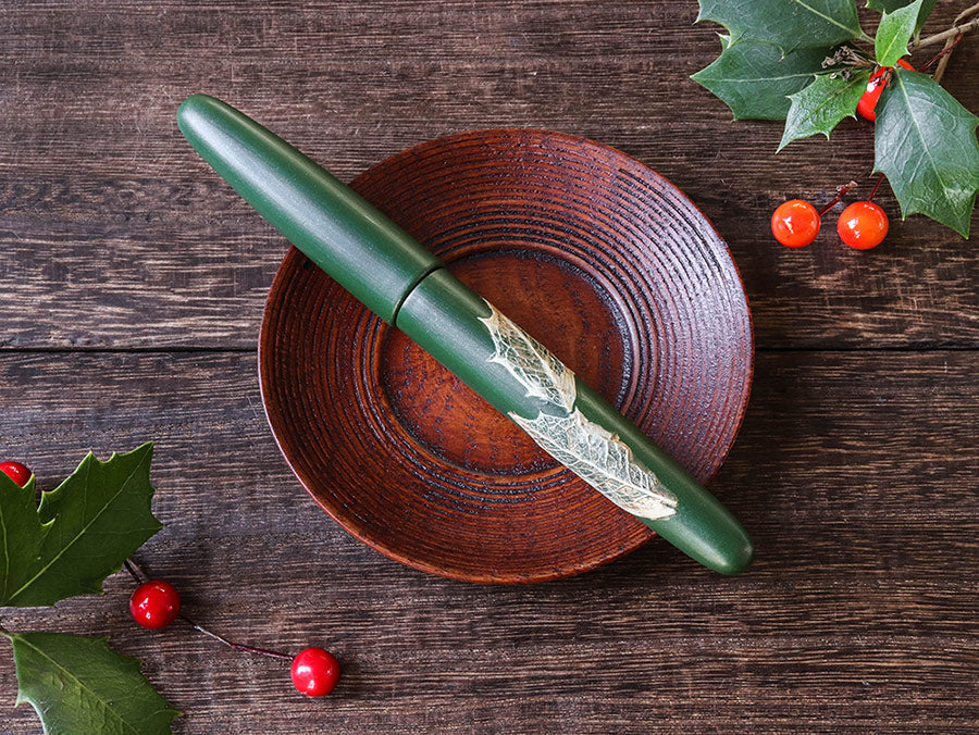 Dream Pen Kiei fountain pen is handmade on the base of Japanese ebonite. On top of that, there are natural urushi, matt urushi, natural leaves and gold powder used to complete this artwork. All materials are carefully made or sourced in Japan.