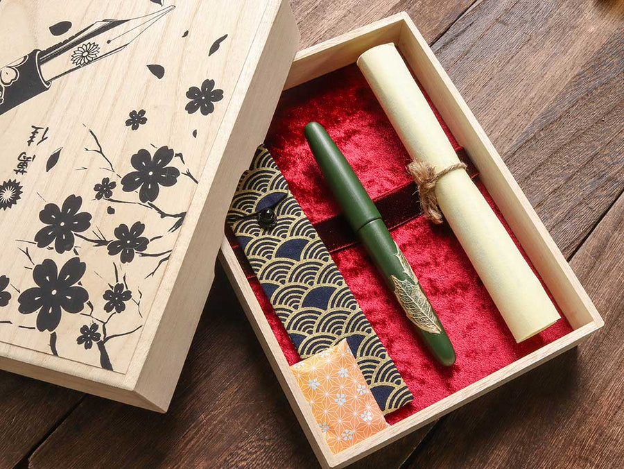Traditional Japanese Wooden Box + Pen Kimono + Instructional Materials + Authenticity Certificate + Converter + Cartridge