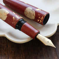 Dream Pen Kiei fountain pen is handmade on the base of Japanese ebonite. On top of that, there are natural urushi, matt urushi, natural sakura petals, and gold powder used to complete this artwork. All materials are carefully made or sourced in Japan.