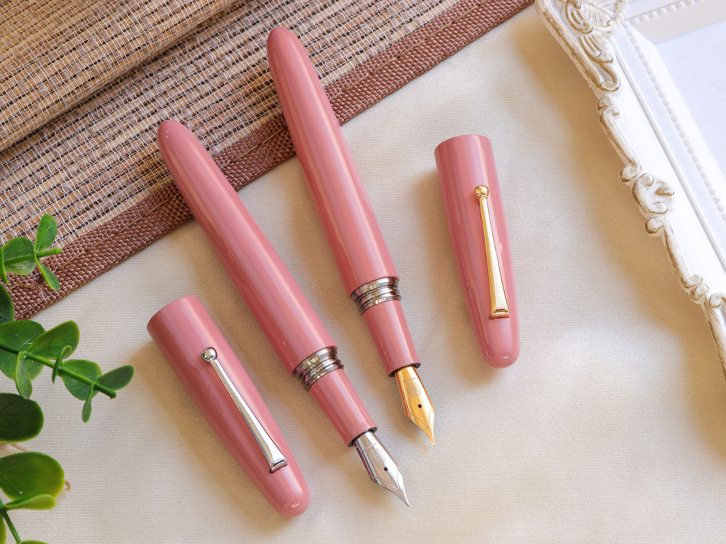 With a name that literally translates to 'Under the Snow', the light pink color is meant to represent the life and color that can be found even in the coldest of winters. Crafted over the course of several months, this fountain pen requires several coatings of different shades of pink and red Urushi to accomplish this final pink hue.