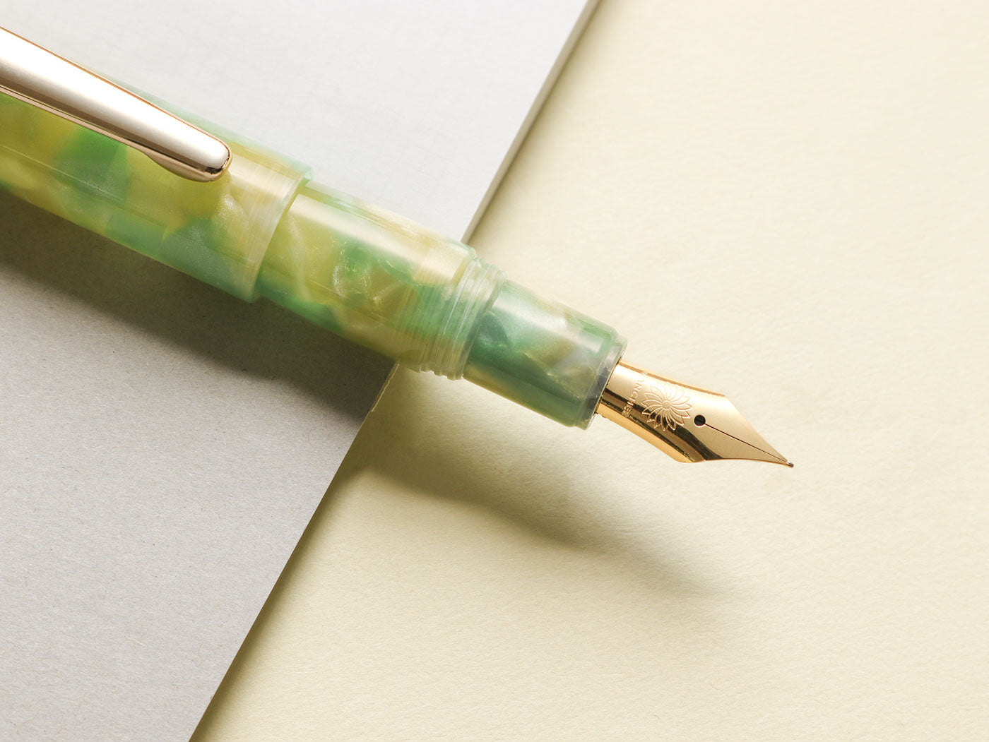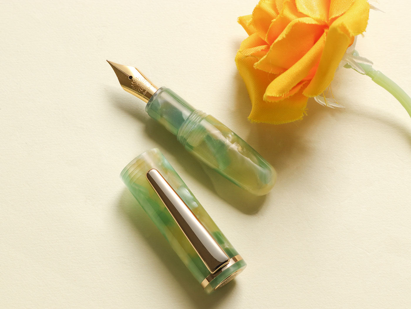 Is there anything more refreshing than a sherbet on a hot summer's day? Perhaps the PuChiCo - Lime Sherbet can come close with its nebulous blobs of shades of light green. This new iteration of the world's smallest fountain pen was inspired by the delicious frozen dessert, as well as the Lime. In case you didn't know, Lime is actually one of the delicacies of Oita Prefecture, which is where our brand is based.