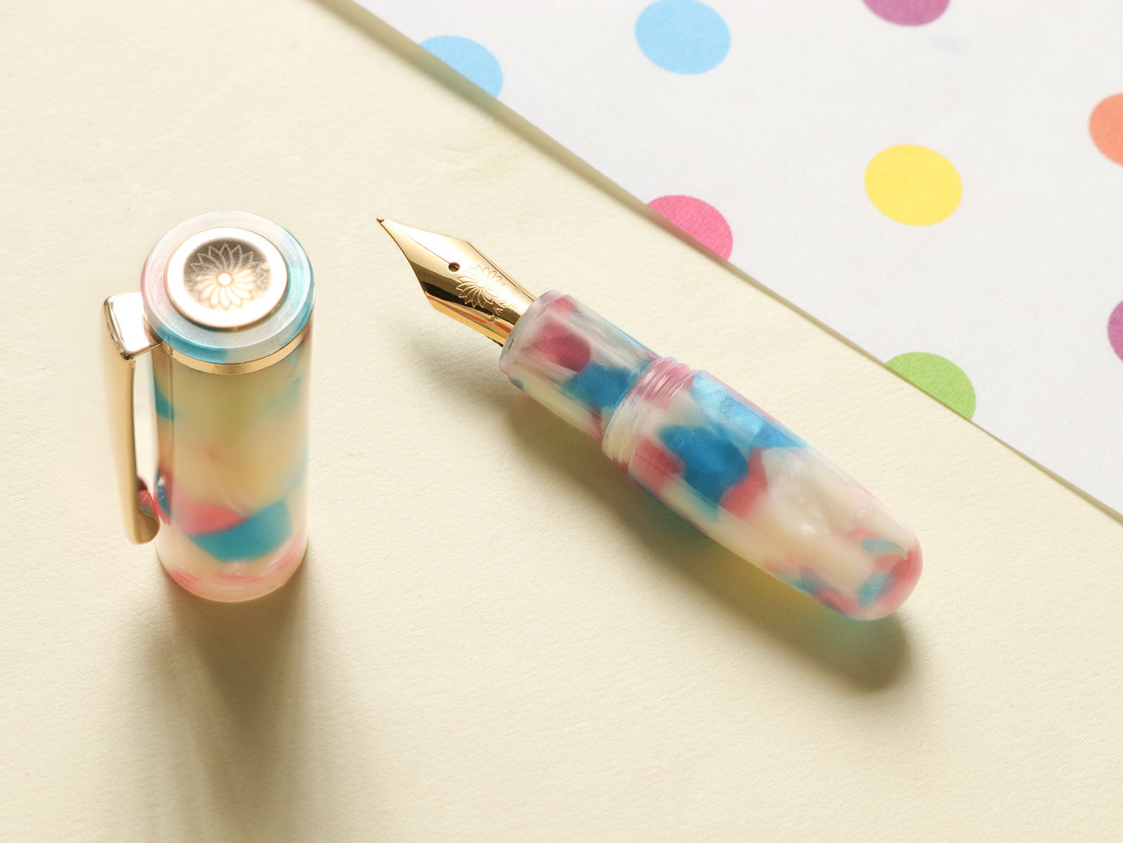 One of the most popular beverages in Japan is a milky white, carbonated soft drink that treats you to a wide variety of flavors without ever being overwhelming. The PuChiCo - Milky Soda was developed to offer much of the same in the form of this tiny yet formidable fountain pen. With a swirl of pink and blue decorating the frothy white color, the PuChiCo - Milky Soda is an unexpected, but welcome surprise for anyone who enjoys something a bit quirky and wild.