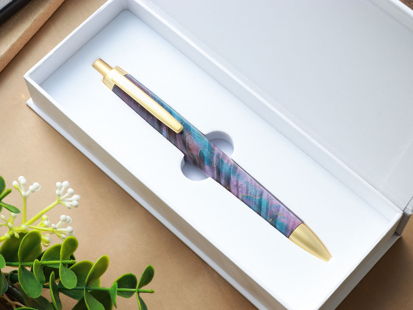 The new 6-color ballpoint pen body is made of stabilized wood, a special material that is carefully carved out one by one. The interesting thing about the Stabilized pens is that you may not know what color the pen will be until it's actually shaved. For example, the pen may occasionally has a pattern that resembles a famous painting, Van Gogh's "Starry Night" that continues to fascinate people all over the world. The inexplicable beauty that emerges from the careful shaving process is truly a work of art. The more you look at this pen, the more you will forget the passage of time because of the mysterious charm of the nature-formed wood grain.