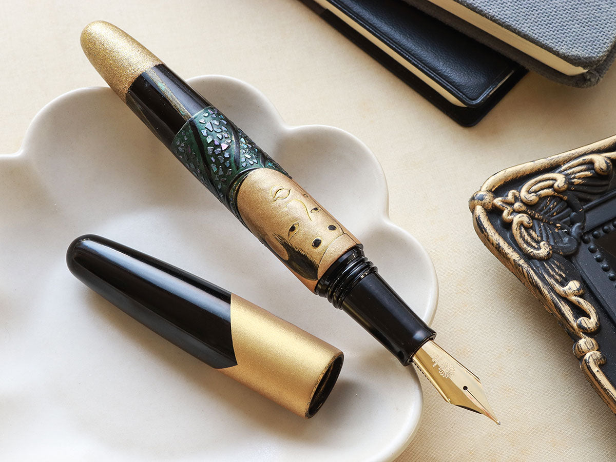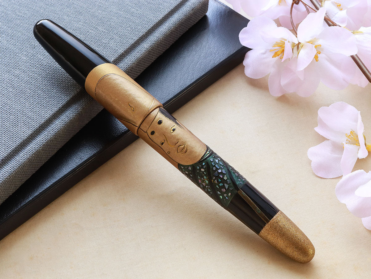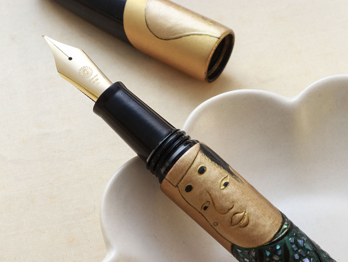 The original design is called "Senmen Narihira", which portrays a figure of noblemen in a robe and Eboshi (old-style hat). The original piece of Senmen Narihira is stored at the Nezu Museum of Art in Aoyama, Tokyo, and is an indispensable page of the history of lacquer craftmanship. It is a soulful work of art that we hope to hand down as a fountain pen after approximately 220 years.