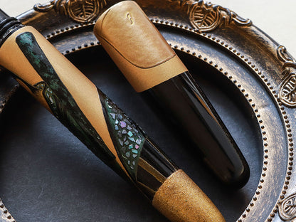 True to the original words, "Taka" which means "Raised high". There are several other techniques for making Taka Maki-e such as "Urushi-age", "Sumiko-age" by using charcoal, and "Sabi-age" which uses gold powder generously while also very laborous. As a result, these Taka Maki-e fountain pens are made to be with three-dimensional with many delicate details. Only when you touch it with your hand, you can feel the true beauty, a wonderful masterpiece.