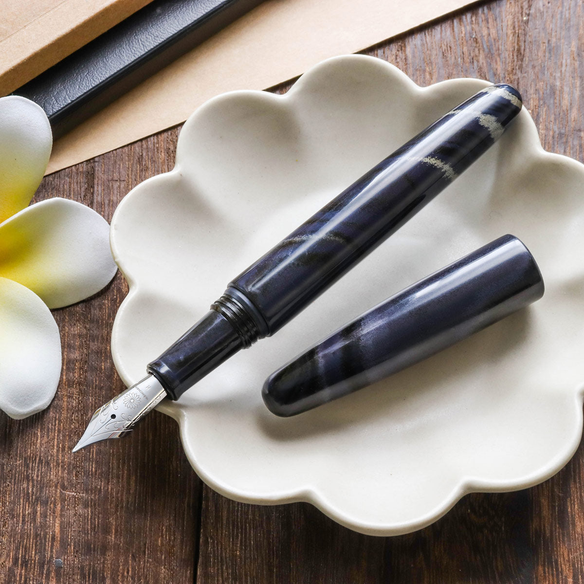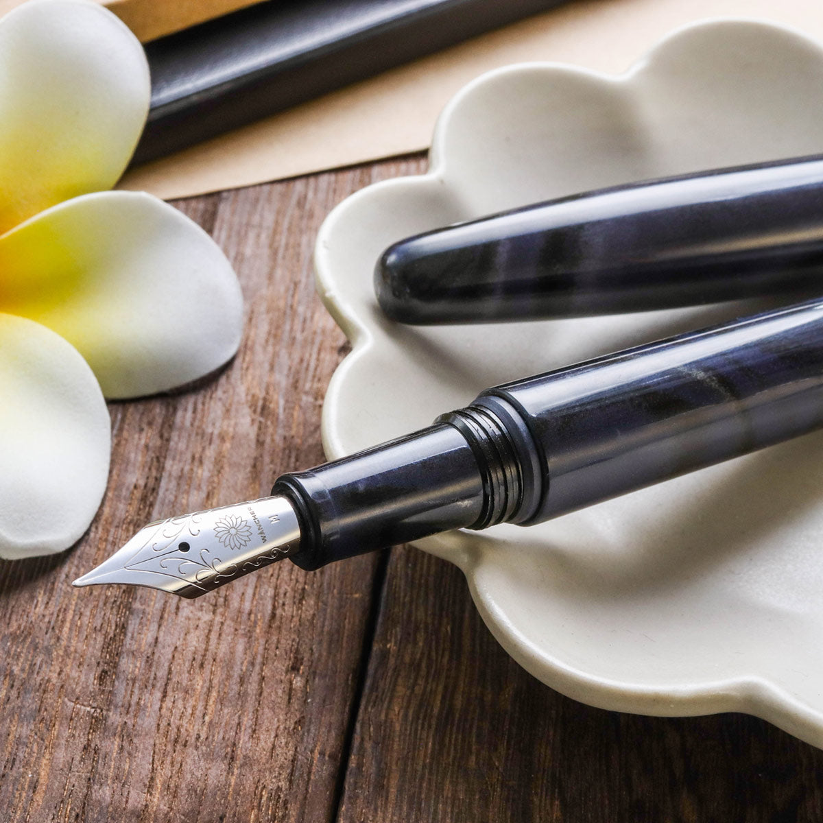 Ebonite is a great material made from natural rubber with a durable, warm, and luxurious feel for handwriting. Ebonite was originally used to make fountain pens in the early 20th century. However, due to its complexity in production, it was later abandoned by most manufacturers in favor of various plastics, which were easier to work with.